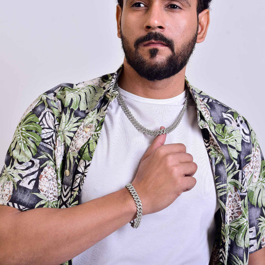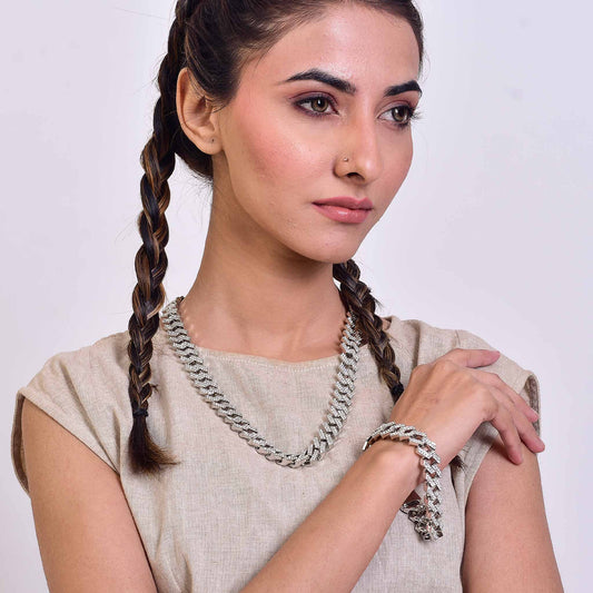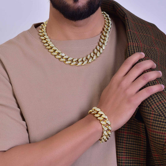 Explore our exclusive collection of Iced Out Cuban Link Chain Necklace & Bracelet Sets, designed to make a bold statement.